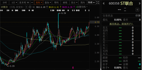 二级市场方面,ST联合股价在停牌前一交易日(即5月14日)就已经“先涨为敬”,当日以涨停收盘,最新报收4.73元/股。